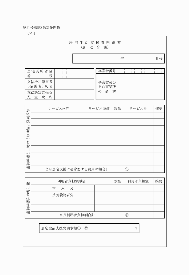 (2) 居宅生活支援費明細書(第21号様式)